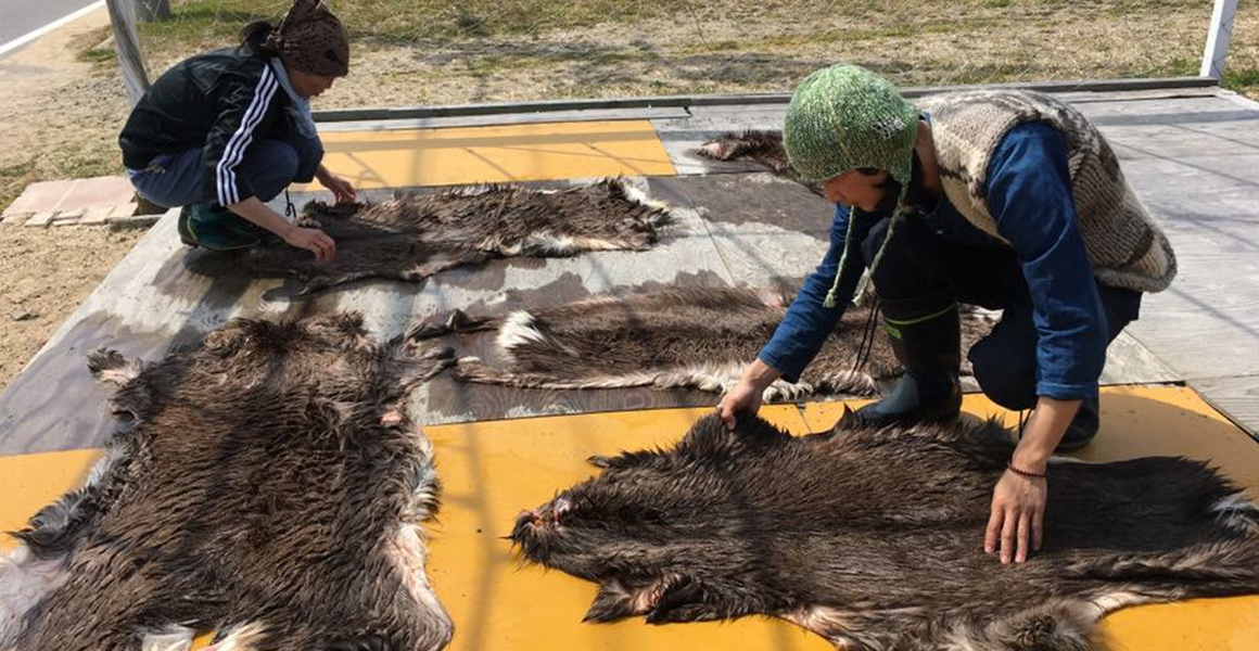 木枠に張っている鹿の皮は、海水で洗い、ヌカで発酵させてなめす。菌が生きてるから、匂いはほとんどしない。木と皮の接着には、鹿の内臓や皮の端材でつくった鹿のニカワを使う。ニカワは木や皮と一緒で、気温や湿気によって膨張と収縮をするから、ドラム全体で呼吸しているような感じ。皮と木がセパレートされた状態ではなくて、木にニカワが染み込んで、皮→ニカワ→だんだん木っていうグラデーションで一体感が生まれ、それが太鼓になる。今までに太鼓を叩いて送り出した人が何人かいるんだけど、「二ヶ月経っても、あの振動がまだ身体に残ってる」と、わざわざ電話をくれた人もいた。日本の水や土、空気と調和する音というのを、日本の動物でどうしても作りたかった。
